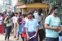 Students standing in a line to collect the student bus pass, in Bengaluru on Wednesday 15th December 2021