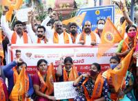 Members of Akhil Bharat Hindu Mahasabha (Karnataka) protesting against SDPI and PFI and demanding to the state government to ban SDPI and PFI in Karnataka State, in Bengaluru on Saturday 18th December 2021