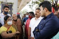 MP Tejasvi Surya interacting with public during his visits to Ejipura to inspect the Ejipura flyover development works, in Bengaluru on Saturday 18th December 2021