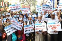 Members of Aam Aadmi Party protesting against Minister Byrathi Basavaraju, in Bengaluru on Monday 20th December 2021