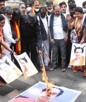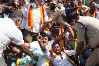 Members of Kannada Activists protesting against the vandalising of Rayanna statue in Belagavi and demanding to ban the MES in Karnataka state, in Bengaluru on Monday 20th December 2021