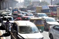 Traffic jam at Tumkur road due to Tumkur Road Highway flyover service work, in Bengaluru on Sunday 26th December 2021