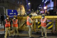 | Event Details: | Police personnel barricade MG Road and Brigade Road, as the Karnataka government has restricted the public to celebrate new year outdoors due to Covid-19 pandemic, in Bengaluru on Friday 31st December 2021 |