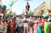 Congress Leaders and Workers protesting against BJP Leader and Minister Ashwath Narayan for his yesterday incident with Congress MP DK Suresh, in Bengaluru on Tuesday 4th January 2022