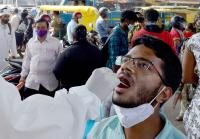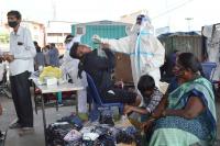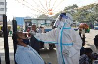 Health workers collect swab samples for COVID 19 tests at KR Market, amid ongoing Coronavirus pandemic, in Bengaluru on Wednesday 12th January 2022