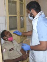 Health workers collect swab samples for COVID 19 tests at Dasappa hospital, amid ongoing Coronavirus pandemic, in Bengaluru on Monday 17th January 2022