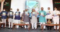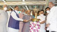 Chief Minister of Karnataka Basavaraj Bommai with Ministers during a program to highlight the achievements of his government on the completion of six month at Vidhana Soudha, in Bengaluru on Friday 28th January 2022