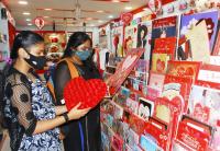 People shopping for Greeting Cards and gifts on the eve of Valentines Day at a shop, in Bengaluru on Friday 11th February 2022