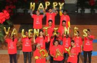Yoga enthusiasts attend a special yoga class for couples themed “Yoga with Love” on the eve of Valentines Day, in Bengaluru on Sunday 13th February 2022
