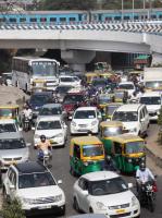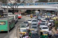 Routine traffic jam at Okalipuram junction due to flyover work progress, in Bengaluru on Wednesday 16th February 2022