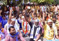 Members of Aam Aadmi Party protesting against Rapido bike and Porter service company, in Bengaluru on Thursday 17th February 2022