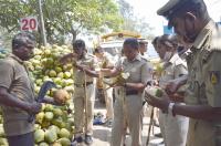 Police personnel seen drinking tender Coconut to quench their thirst in this scorching heat at Freedom Park, in Bengaluru on Monday 21st February 2022