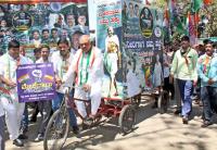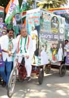 KPCC Working President Ramalinga Reddy inaugurating the Mekedatu walk for water campaign bicycle, in Bengaluru on Friday 25th February 2022