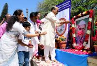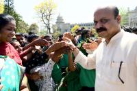 CM Basavaraj Bommai with Minister Sudhakar and others paid floral tribute Former CM KC Reddy portrait on his death anniversary at Vidhana Soudha, in Bengaluru on Sunday 27th February 2022