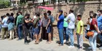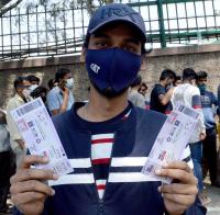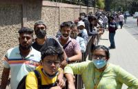 Cricket enthusiasts standing in a line to buy tickets for the 2nd test match between Srilanka vs India at Chinnaswamy Stadium, in Bengaluru on Sunday 6th March 2022