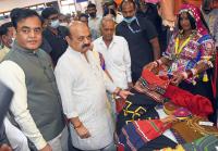 CM Basavaraj Bommai and Minister Ashwath Narayan inaugurating the Women Business Mela as a part of International Womens Day at Vidhana Soudha, in Bengaluru on Monday 7th March 2022