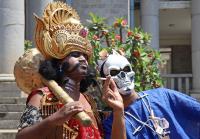 Artists from Vishwa Bharathi performing street drama to create awareness on "No Tobacco and No Smoking" , in Bengaluru on Wednesday 9th March 2022