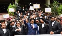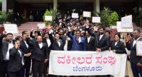 Members of Advocates Association protesting against the threat posed to chief justice on Hijab issue , in Bengaluru on Wednesday 23rd March 2022