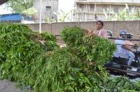 People shopping mango leaves, vegetables, fruits and flowers at on the occasion of Ugadi festival at KR Market, in Bengaluru on Thursday 31st March 2022
