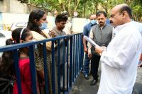 Chief Minister Basavaraj Bommai listening to public grievances during the Janatha Darshan program at his residence, in Bengaluru on Saturday 2nd April 2022