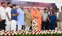 CM Basavaraj Bommai with Suttur Seer and JSS AHER Chancellor Sri Shivarathri Deshikendra Swamiji, Actor Shivarajkumar and others inaugurated the Infosys Foundation Block in Mysuru on Thursday 7th April 2022