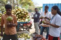 People seen drinking Tender Coconut to quench their thirst in this scorching heat, in Bengaluru on Friday 8th April 2022