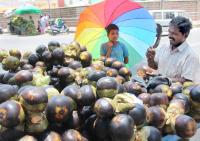 People seen buying Thaati Nungu (ice apple) to quench their thirst in this scorching heat at RT Nagar, in Bengaluru on Wednesday 27th April 2022