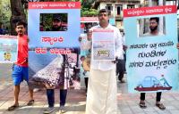 Residents of Malleshwaram participated in silent protest with holding placards during their protest against delay work progress in Malleshwaram assembly constituency, in Bengaluru on Sunday 1st May 2022