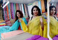 Television Actresses Sindhu Gowda and Nidhi Rao during the inauguration of the Arts and Crafts at Chitrakala Parishat, in Bengaluru on Friday 6th May 2022