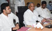 Ministers V Somanna, Gopalaiah, MP Tejasvi Surya, MLA Dinesh Gundu Rao during a meeting at BBMP , in Bengaluru on Wednesday 25th May 2022