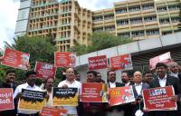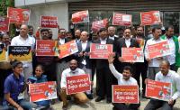 Members of Lawyers association protesting against Education Minister Nagesh for his statement on poet Kuvempu at City civil court, in Bengaluru on Monday 20th May 2022