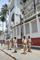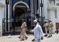 Police personnel deployed in front of City Jamia Masjid as a precautionary measures after controversial remarks by Nupur Sharma, in Bengaluru on Saturday 11th June 2022