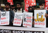AIDYO members protest against the Agnipath project, at Freedom Park, in Bengaluru on Wednesday 22nd June 2022