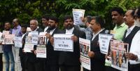 Members of Advocates Association protest in front of city civil court against Gujarat police for arresting Activist Teesta Setalvad and Sreekumar, in Bengaluru on Monday 27th June 2022