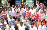 Members Rajajinagar Block Congress led by Former Mayor Padmavathi protesting against the implementation of Agnipath scheme by the Central government, in Bengaluru on Monday 27th June 2022