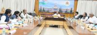 Chief Minister Basavaraja Bommai with Minister Murugesh Nirani and others during a meeting on Kudalasangama Development Board at CM home office, in Bengaluru on Thursday 7th July 2022