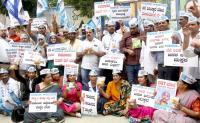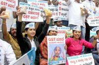 Members of Aam Aadmi Party protesting against central government inflation and the decision to increase GST on food items, in Bengaluru on Wednesday 20th July 2022