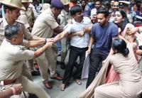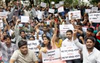 KPSC candidates protesting at Udyoga Soudha demanding to release the results and other various demands, in Bengaluru on Monday 25th July 2022