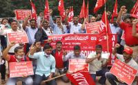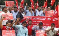 Members of AITUC protesting against central government price hike policies, in Bengaluru Friday 29th July 2022