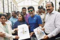 Actor Shivarajkumar and his wife Geetha visited Lalbagh and received the Dr Rajkumar and Puneeth Rajkumar theme for the Independence Day flower show , in Bengaluru Friday 29th July 2022