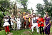 Children with freedom fighters dresses pose at Chikka Lalbagh during awareness program on Azadi ka Amrit Mahotsav celebrations of the 75th Independence Day , in Bengaluru on Monday 8th August 2022