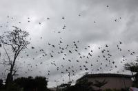 Flock of pigeons take a flight near Majestic Bus Stand as dark clouds hover over Bengaluru City on Monday 8th August 2022
