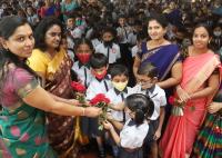 Children giving roses to their teachers on the occasion of Teachers Day at a private School, in Bengaluru on Monday 5th September 2022