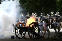 Canon shots fired in the presence of Dasara elephants as part of the Dasara 2022 festivities, in Mysuru on Monday 12th September 2022