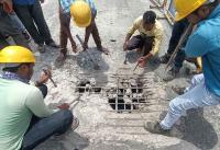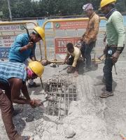 Workers in progress for repairing the damaged Sumanahalli flyover on outer ring road stretch after a portion of Sumanahalli bridge crumbled, in Bengaluru on Wednesday 21st September 2022