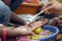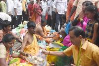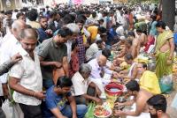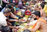 Devotees perform rituals to departed souls on the occasion of Final day of Pitru Paksha Mahalaya Amavasya at Kashi Vishwanath Temple, in Bengaluru on Sunday 25th September 2022