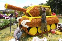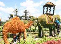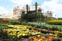 Flower show preparation work in process at Mysuru Palace premises , ahead of Dasara Festival celebrations, in Mysuru on Sunday 25th September 2022