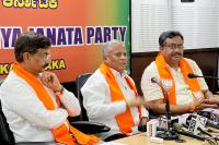 Minister V Somanna and BJP leaders addressing media at BJP office, in Bengaluru on Friday 30th September 2022