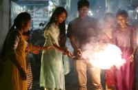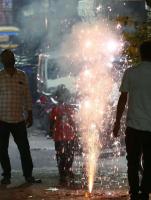 People bursting crackers to celebrate Diwali Festival, in Bengaluru on Monday 24th October 2022