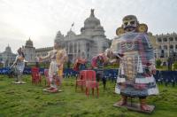 Preparations for the 67th Kannada Rajyotsava celebrations and awards program in front of Vidhana Soudha, in Bengaluru on Monday 31st October 2022